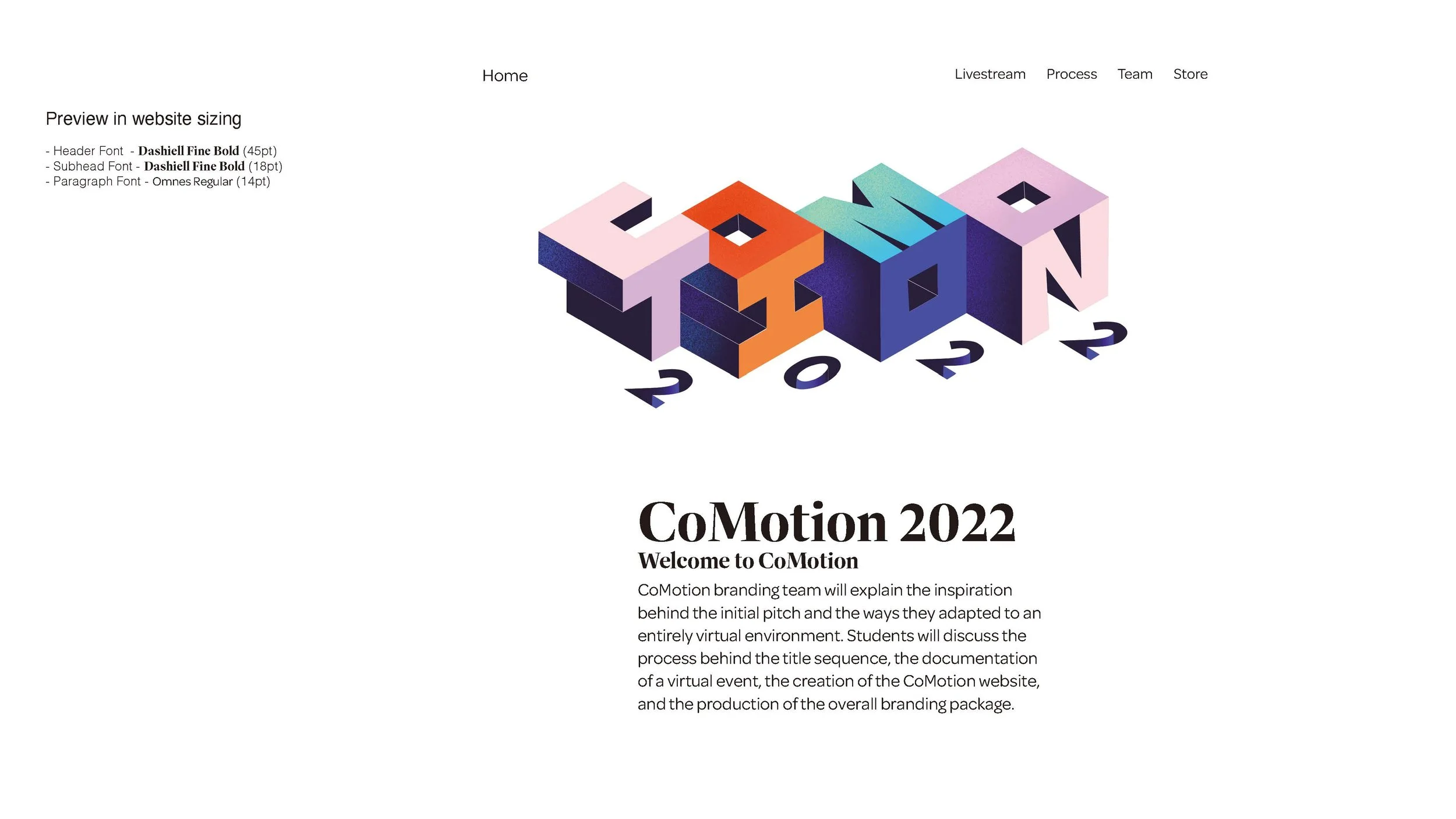 CoMotion is one of the largest and longest-running student-led motion graphics conferences at the Savannah College of Art and Design in the world. I served as graphic design lead for the 13th annual CoMotion in 2022 Winter, managing a graphic team of 5 graphic designers. Collaborate seamlessly with cross-disciplinary 36 multidisciplinary artists over the course of five months.